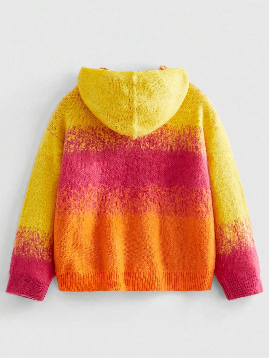 Street Life Sudadera con capucha holgada de moda de otoño/invierno para hombres con estampado jacquard degradado