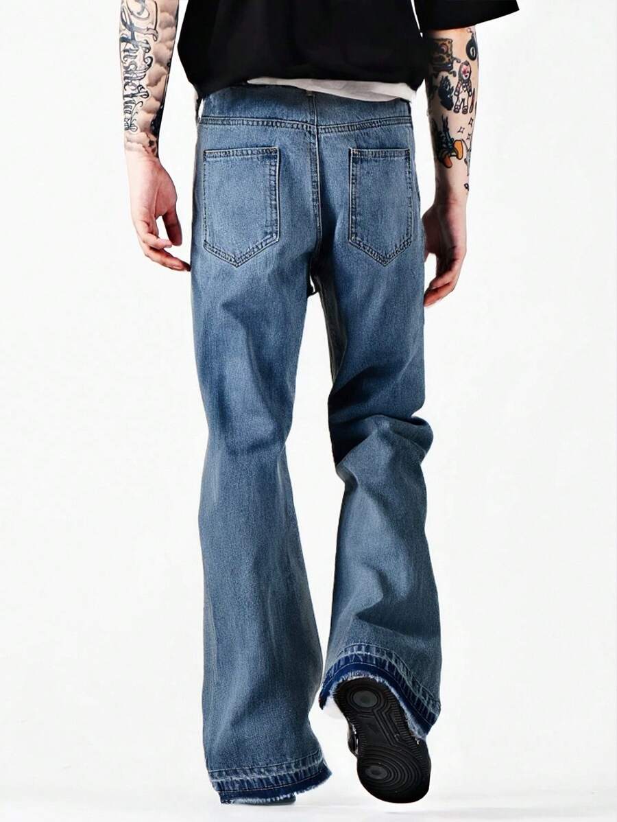 Street Life Pantalones vaqueros casuales y versátiles con vuelo en los bolsillos para hombres