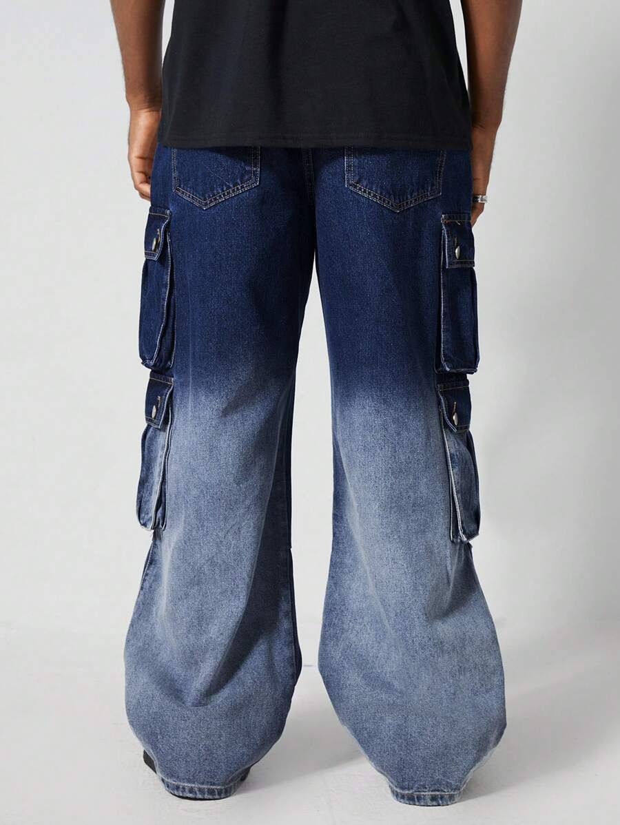 Street Life Pantalones vaqueros tipo cargo casuales de hombre con lavado, piernas anchas y bolsillos con solapa