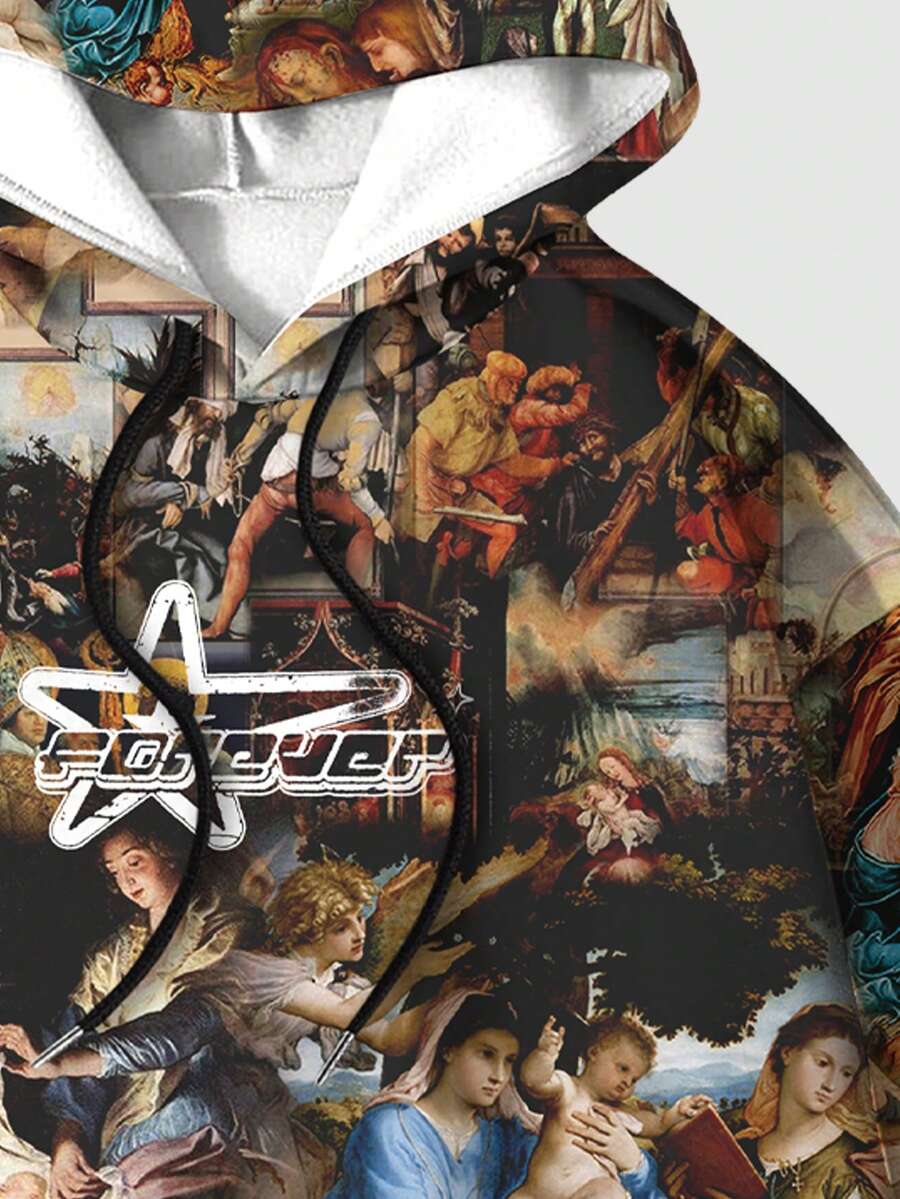 Street Life Sudadera con capucha informal con cordón para hombre, con estampado de pintura, primavera otoño