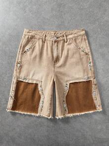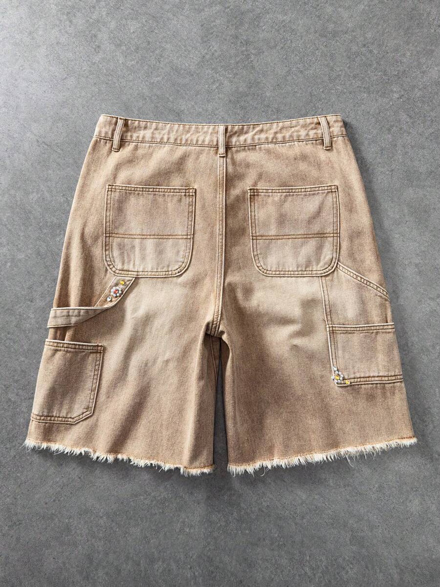 Street Life Pantalones cortos vaqueros casuales de uso diario para hombres con bolsillos, botón y dobladillo deshilachado