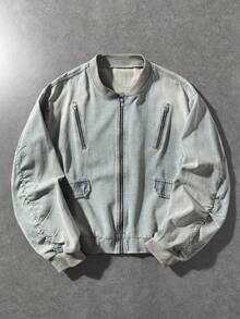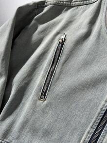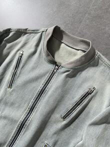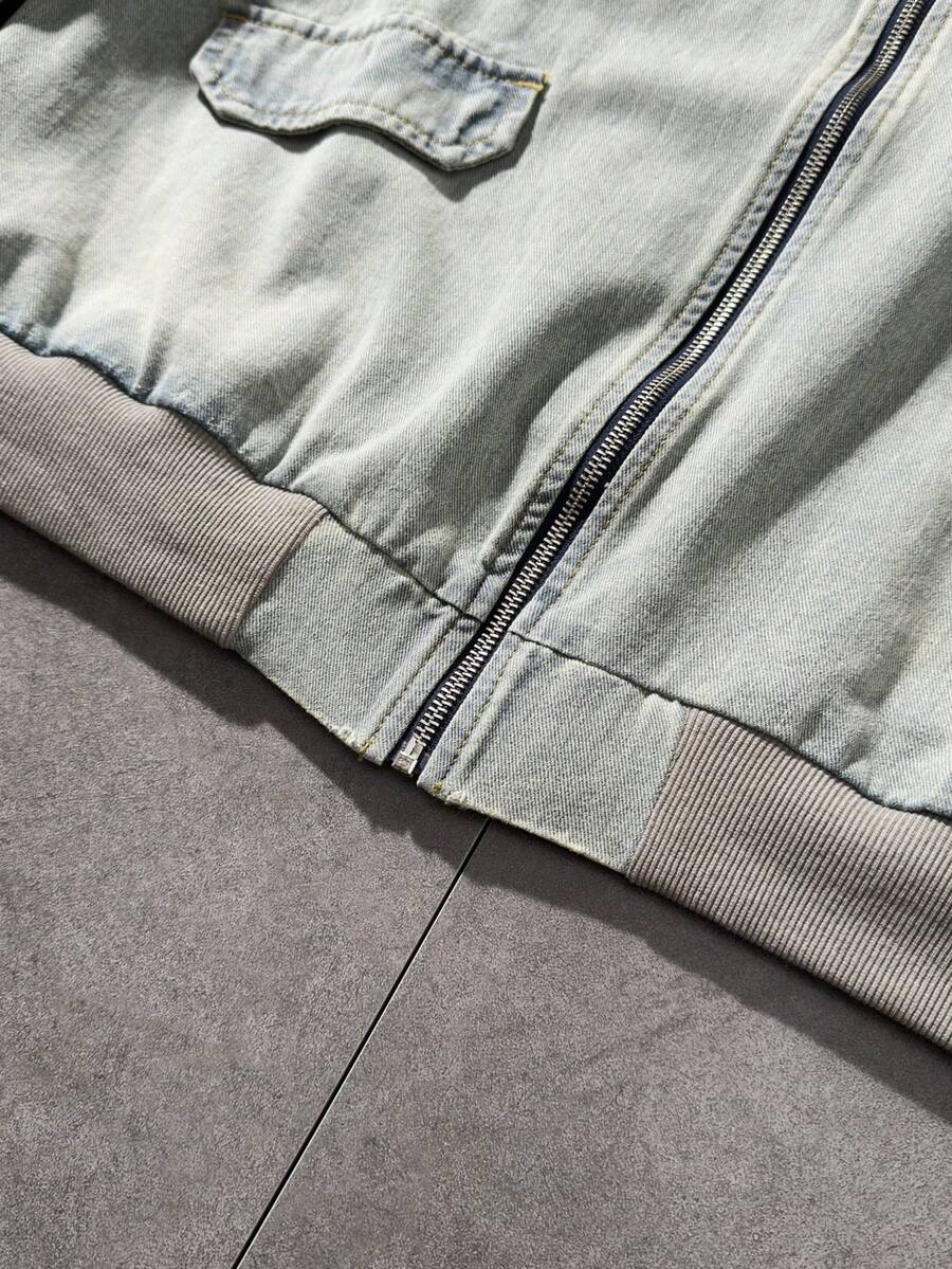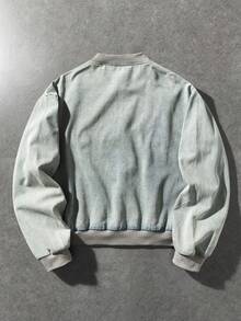 Street Life Chaqueta de béisbol de mezclilla con cremallera y detalle de solapa, casual y de moda para hombre, para primavera/otoño