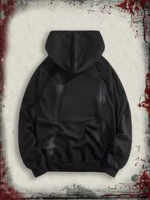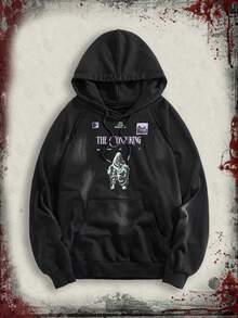 Street Life Sudadera con capucha casual de moda callejera para hombres con estampado de escultura y letras, con cordón en el bolsillo, otoño