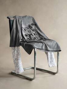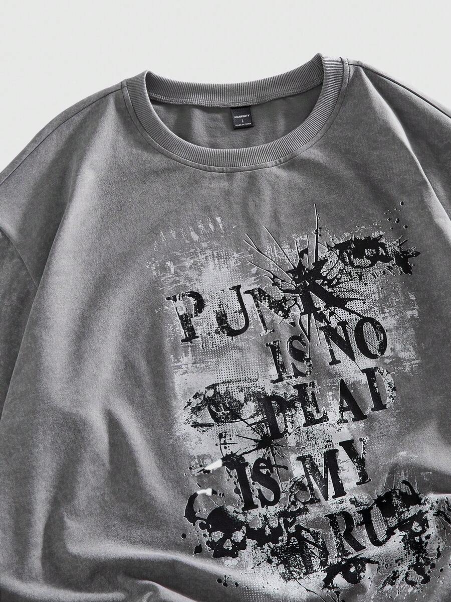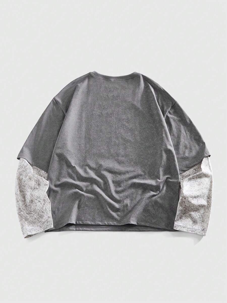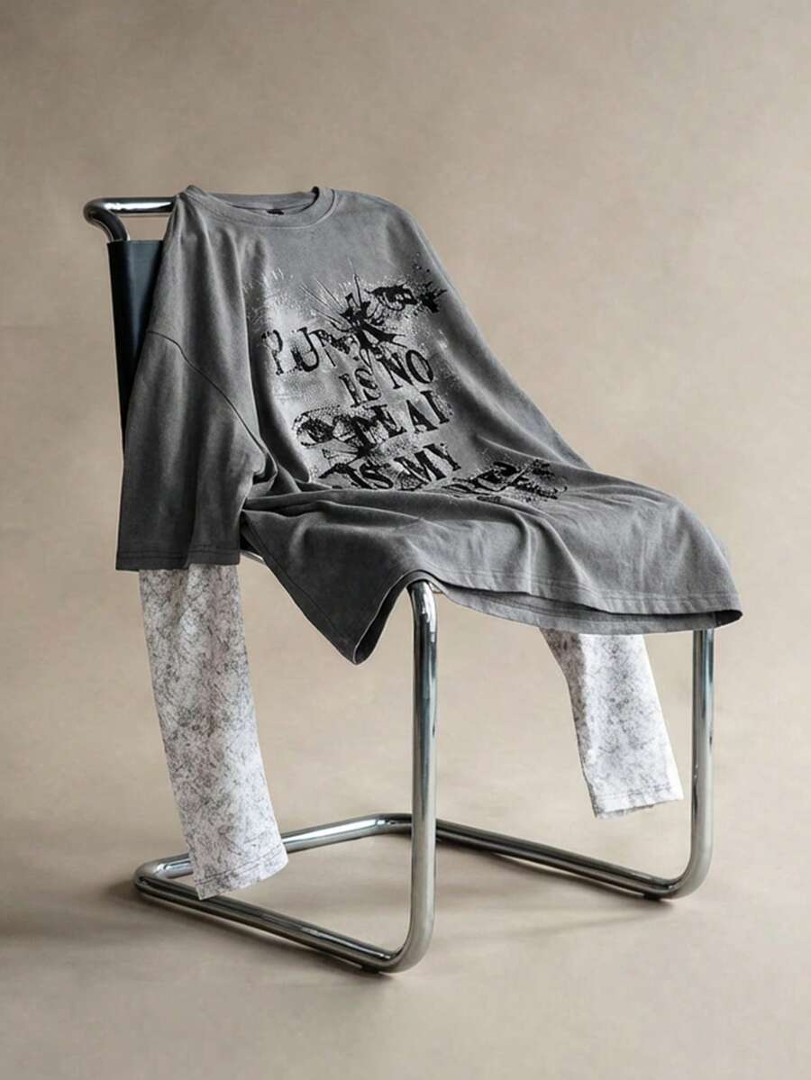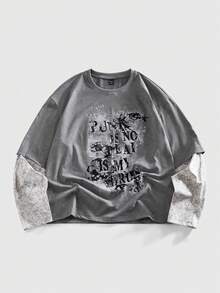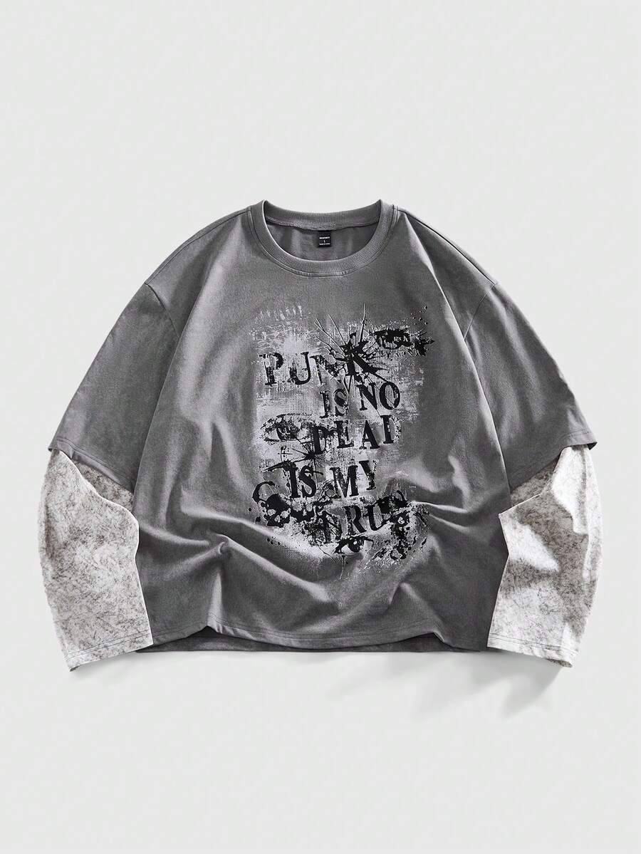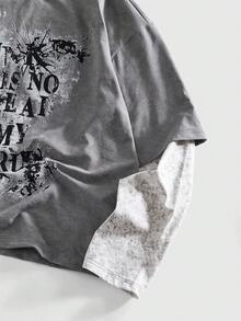 Street Life Camiseta casual de moda urbana con eslogan e impresión oscura 2 en 1 para hombre, primavera/otoño