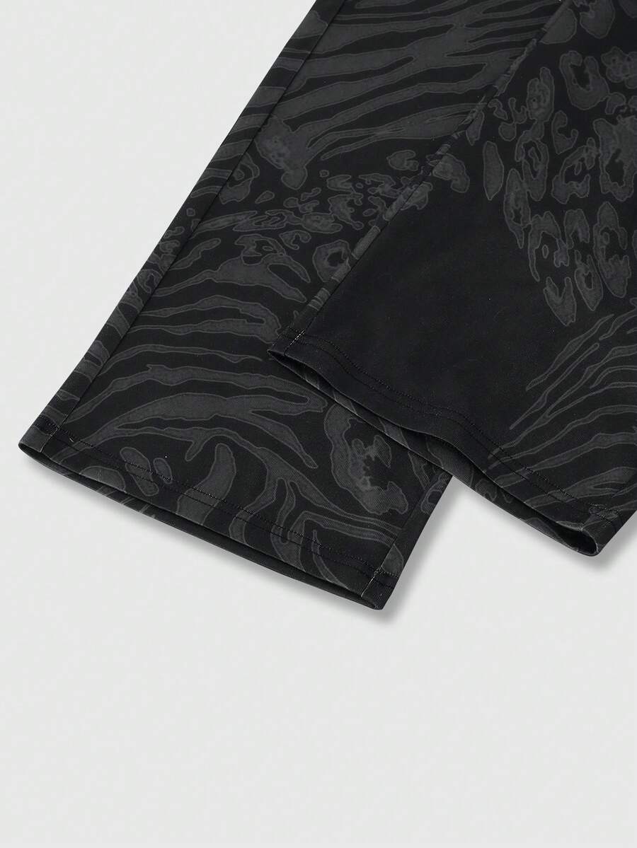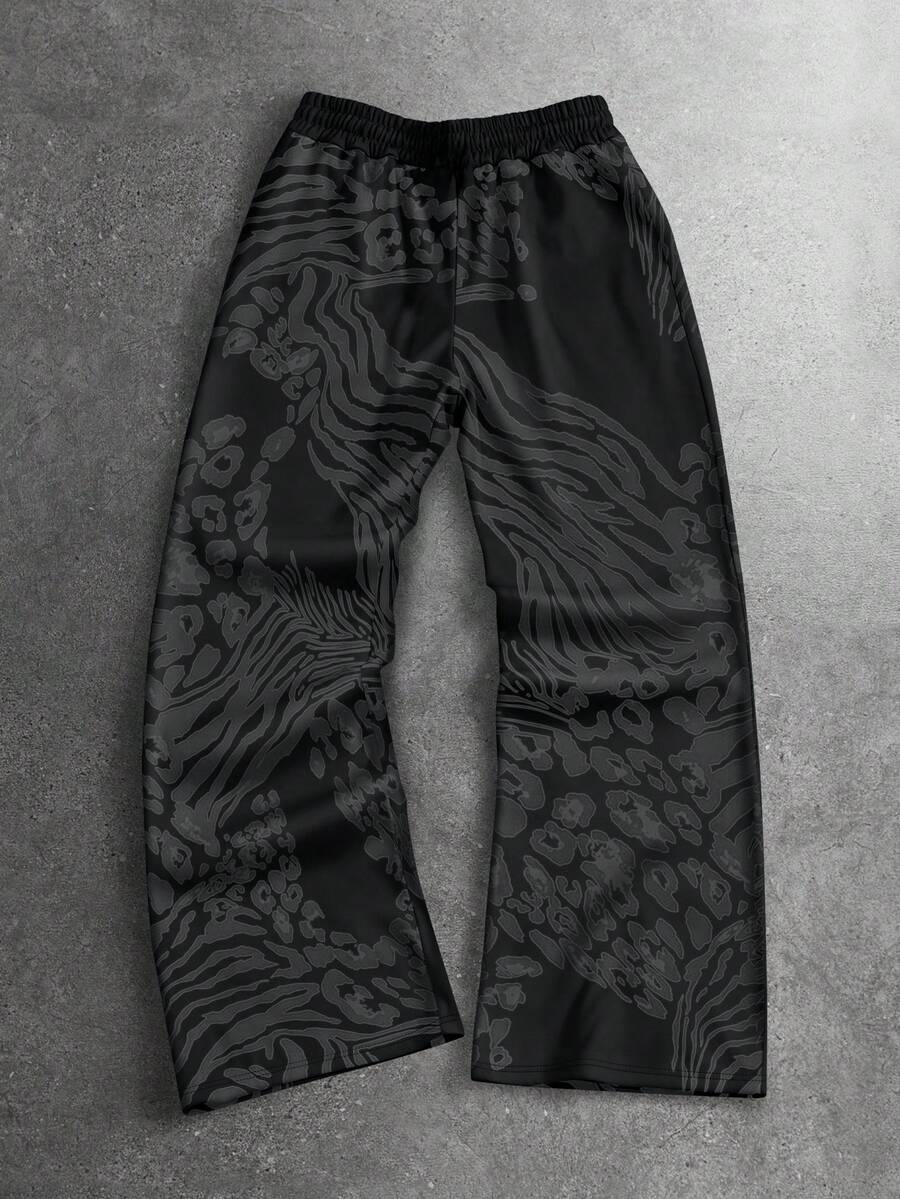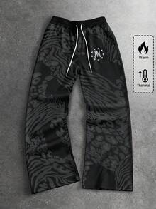 Street Life Pantalones de chándal con cordón en la cintura, forro térmico, estampado de leopardo y cebra en patchwork, de moda casual para hombre, para otoño/invierno
