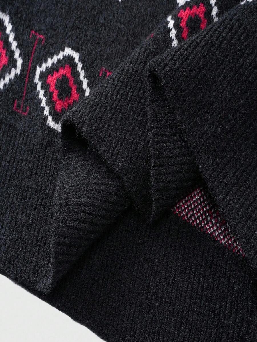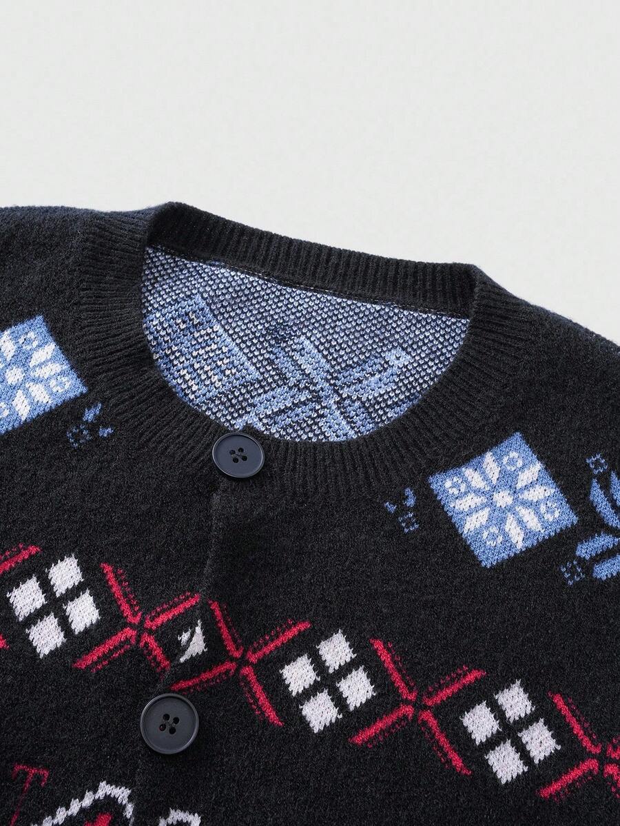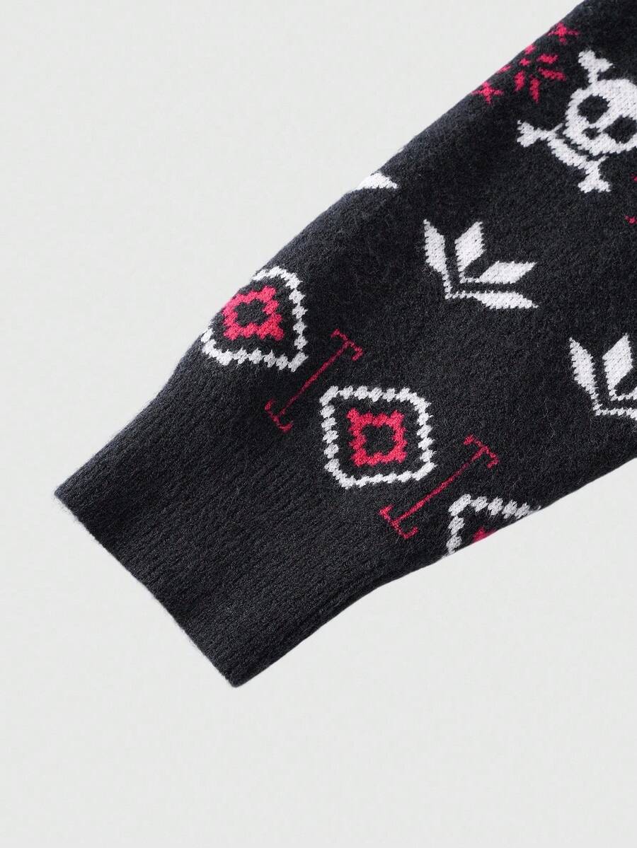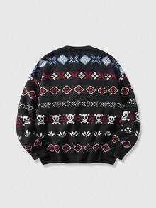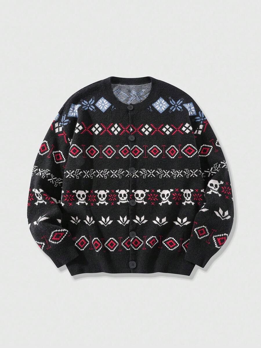 Street Life Suéter casual de hombre con botones con patrón geométrico y de calavera, estilo grunge para otoño/invierno