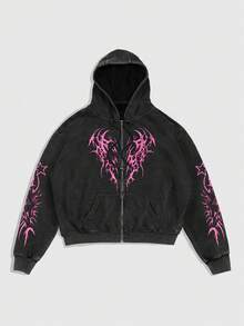 Street Life Sudadera con capucha con cremallera y estampado gráfico casual para hombre, otoño
