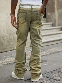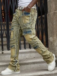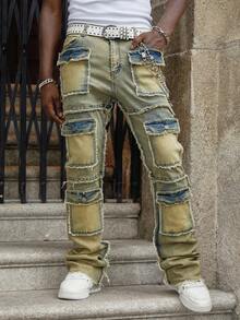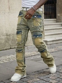 Street Life Jeans casuales para hombres con bolsillos y dobladillo deshilachado