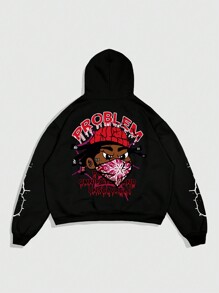 Street Life Sudadera con capucha con cremallera casual para hombres, estampado de letras y dibujos animados, para otoño/invierno
