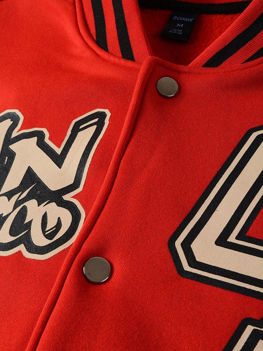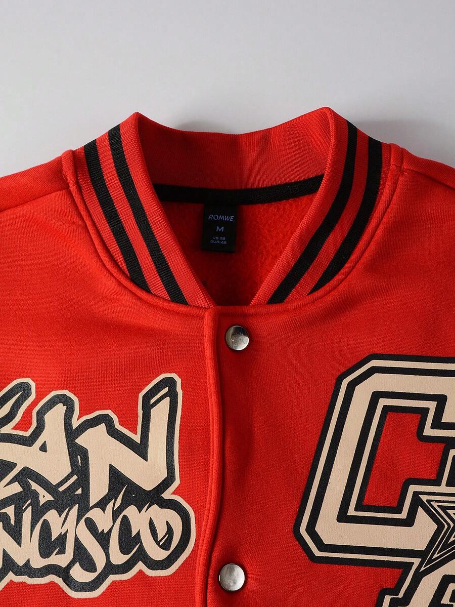 Street Life Chaqueta de béisbol casual para hombres con estampado de letras y números para otoño/invierno