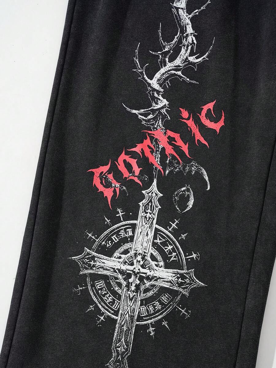 Street Life Pantalón de chándal holgado y casual con estampado de letra y cruz, adecuado para otoño e invierno para hombre