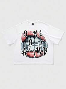 Street Life Camiseta de manga corta de cuello redondo con estampado de boca, casual de verano para hombre