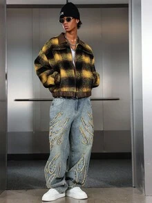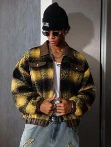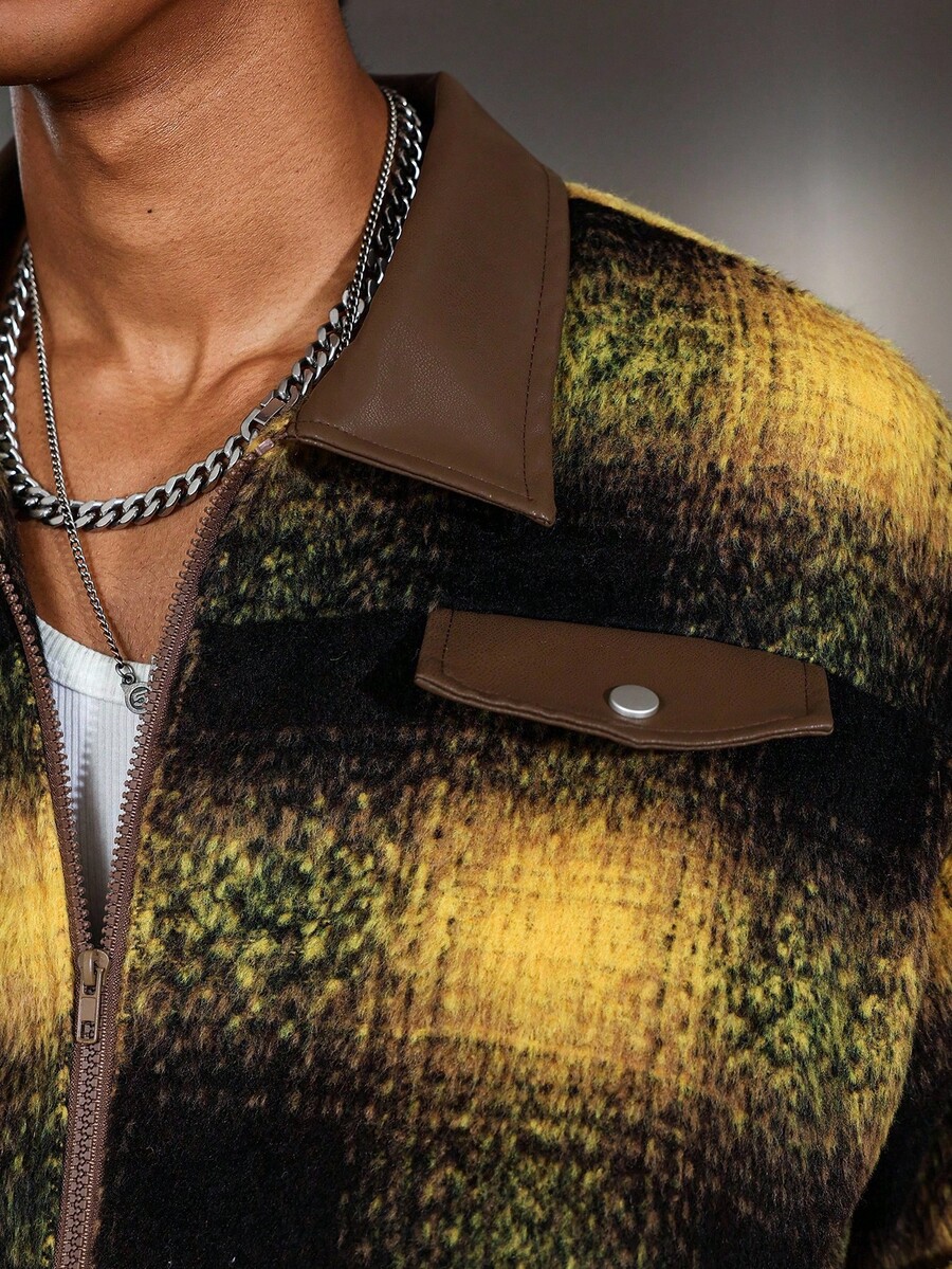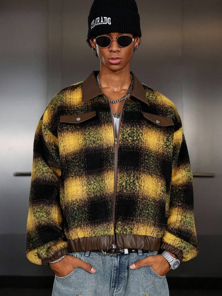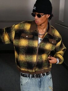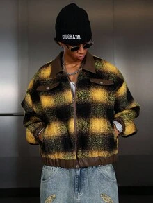 Street Life Abrigo informal con cremallera y estampado de cuadros para hombre, otoño/invierno