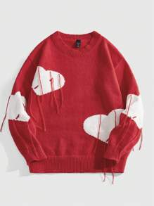 Street Life Jersey de punto con cuello redondo, manga larga y estampado de corazones, informal para hombre