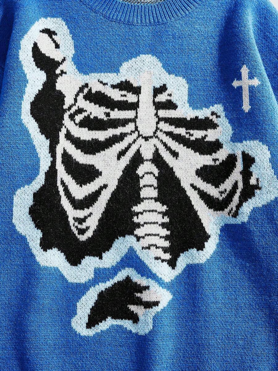Street Life Jersey de punto casual para hombre con estampado de calavera y cruz, para otoño/invierno