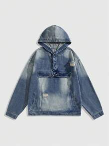 Street Life Chaqueta vaquera con capucha lavada y desgastada casual para hombre, otoño
