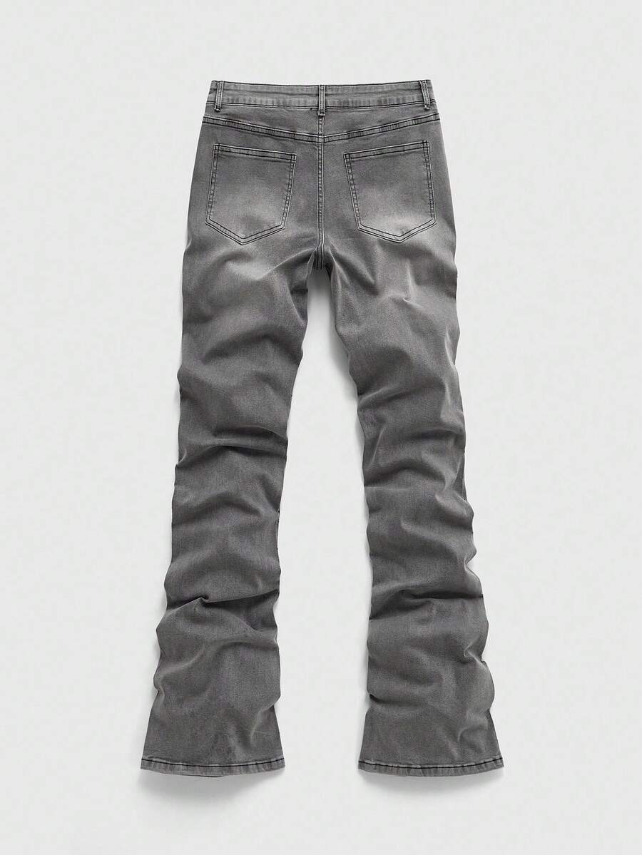 Street Life Jeans acampanados casuales para hombres con aplicaciones de rhinestones lavados