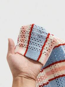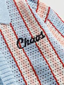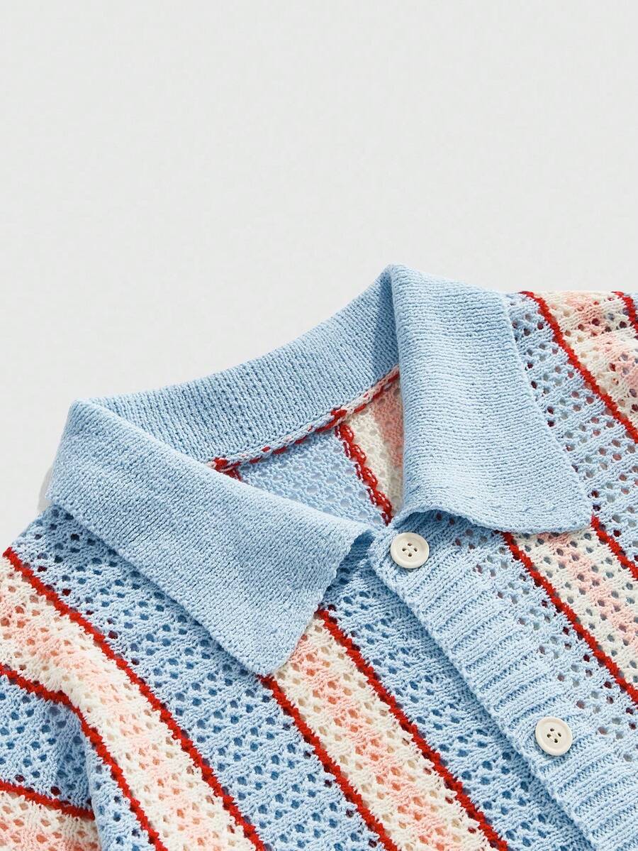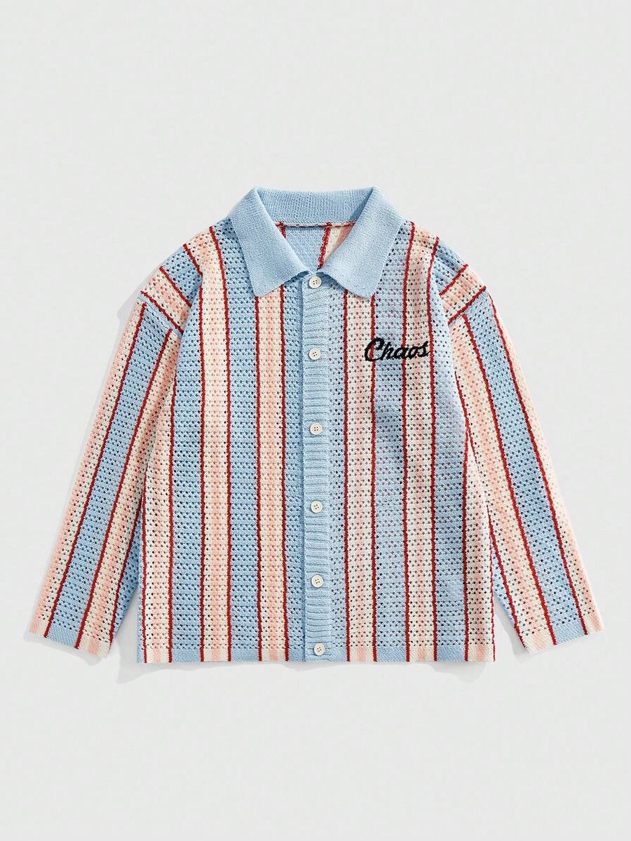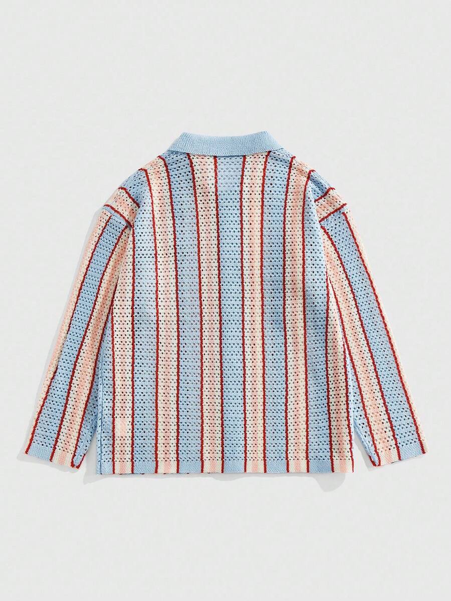 Street Life Cárdigan de punto con rayas de contraste y calado para hombre, otoño e invierno