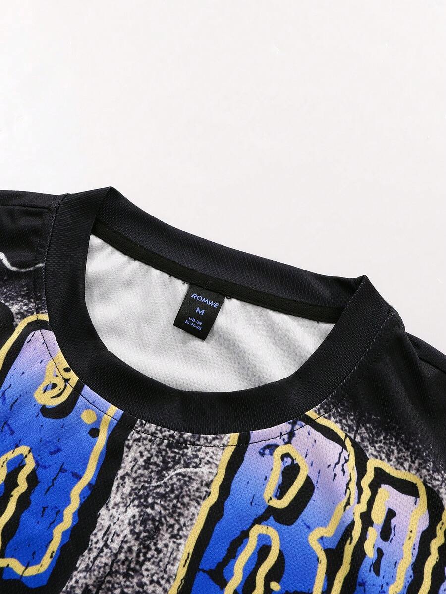Street Life Camiseta casual de manga corta con cuello redondo y estampado de letras para hombre