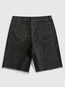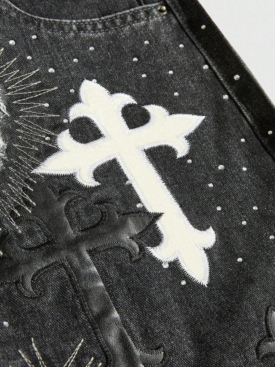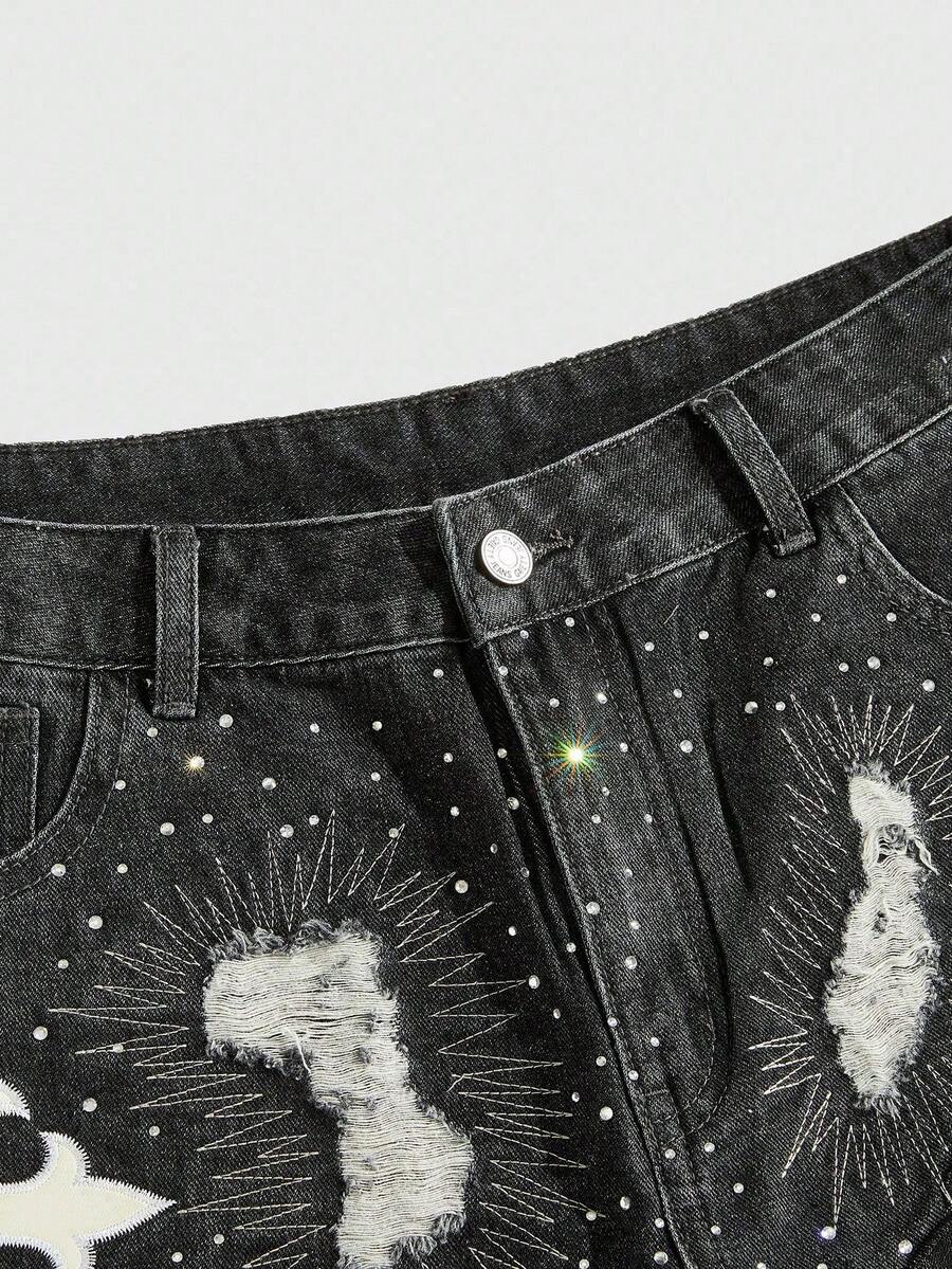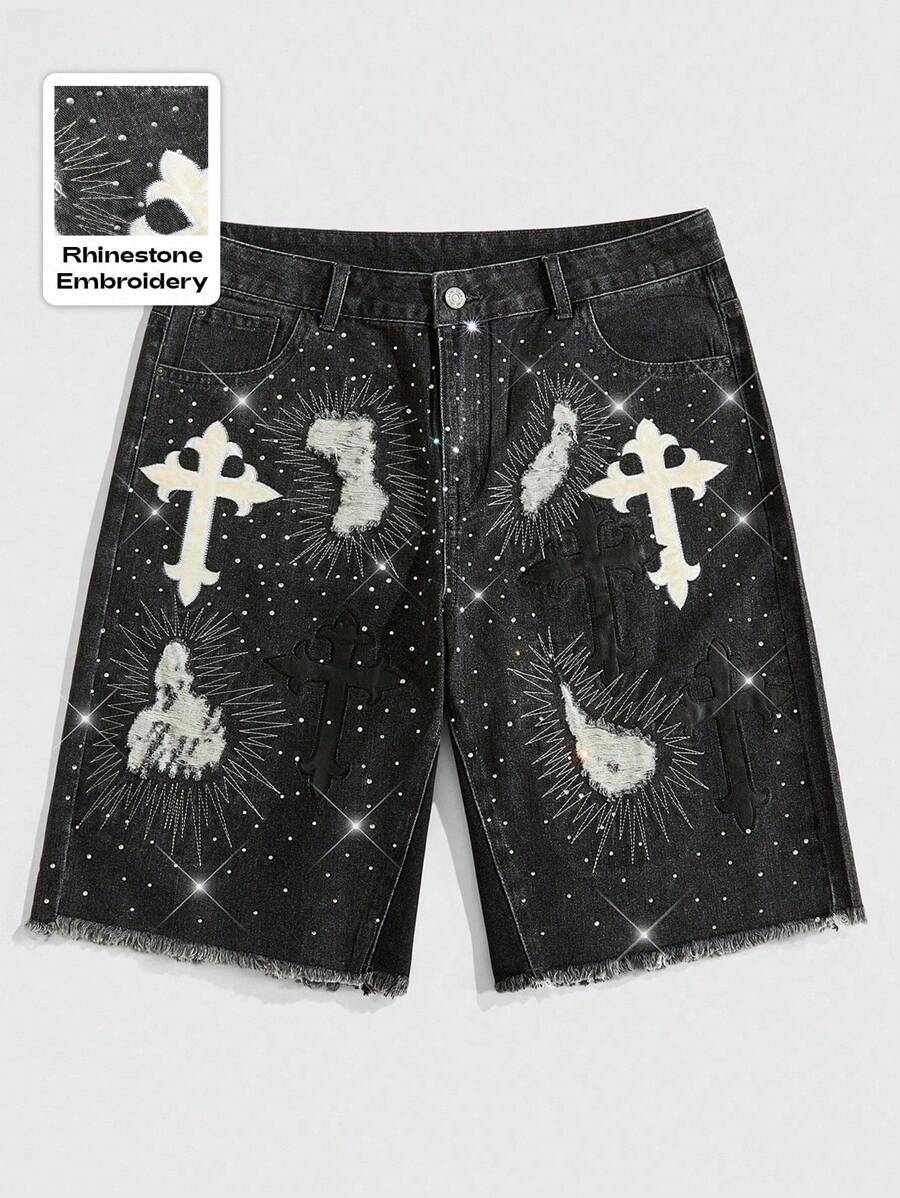Goth Pantalones cortos de mezclilla con bordado de cruz y strass para hombres