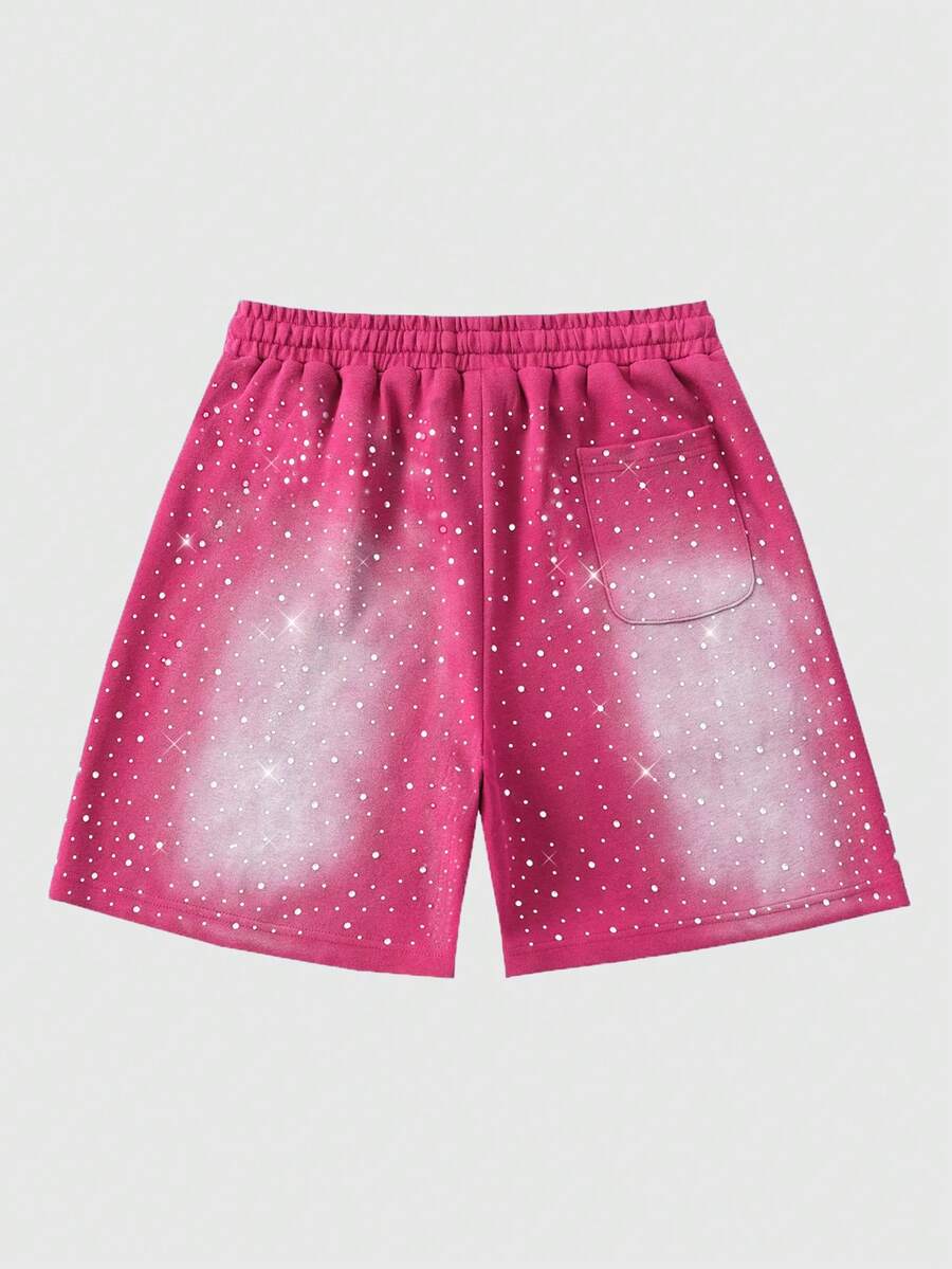 Street Life Pantalones cortos con cordón en la cintura y adornos de diamante de imitación desgastados para hombres