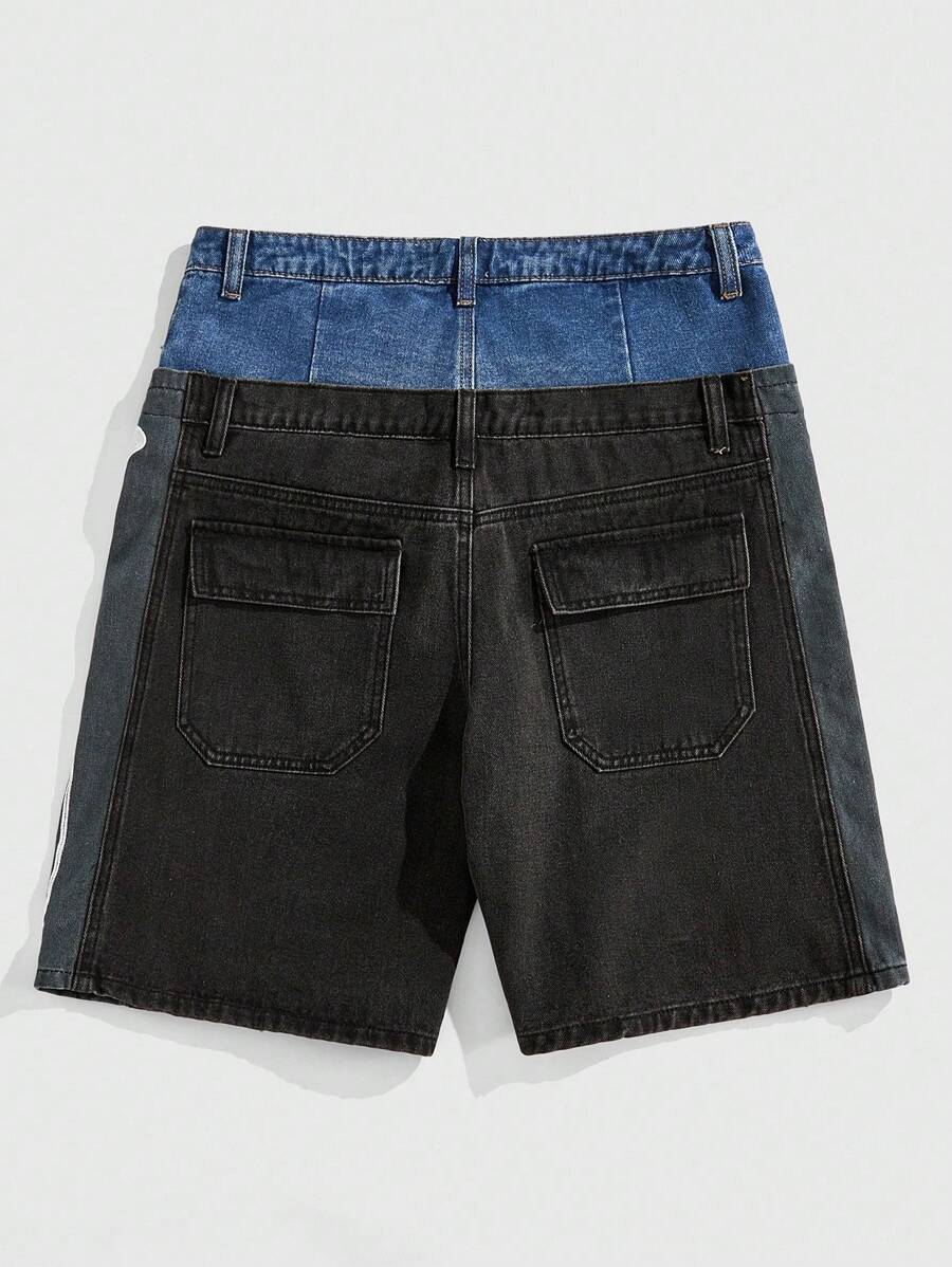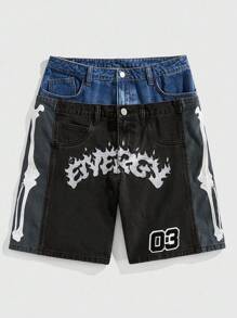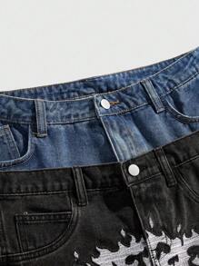 Street Life Pantalones cortos de mezclilla cargo con gráfico bordado y doble cintura para hombres
