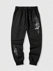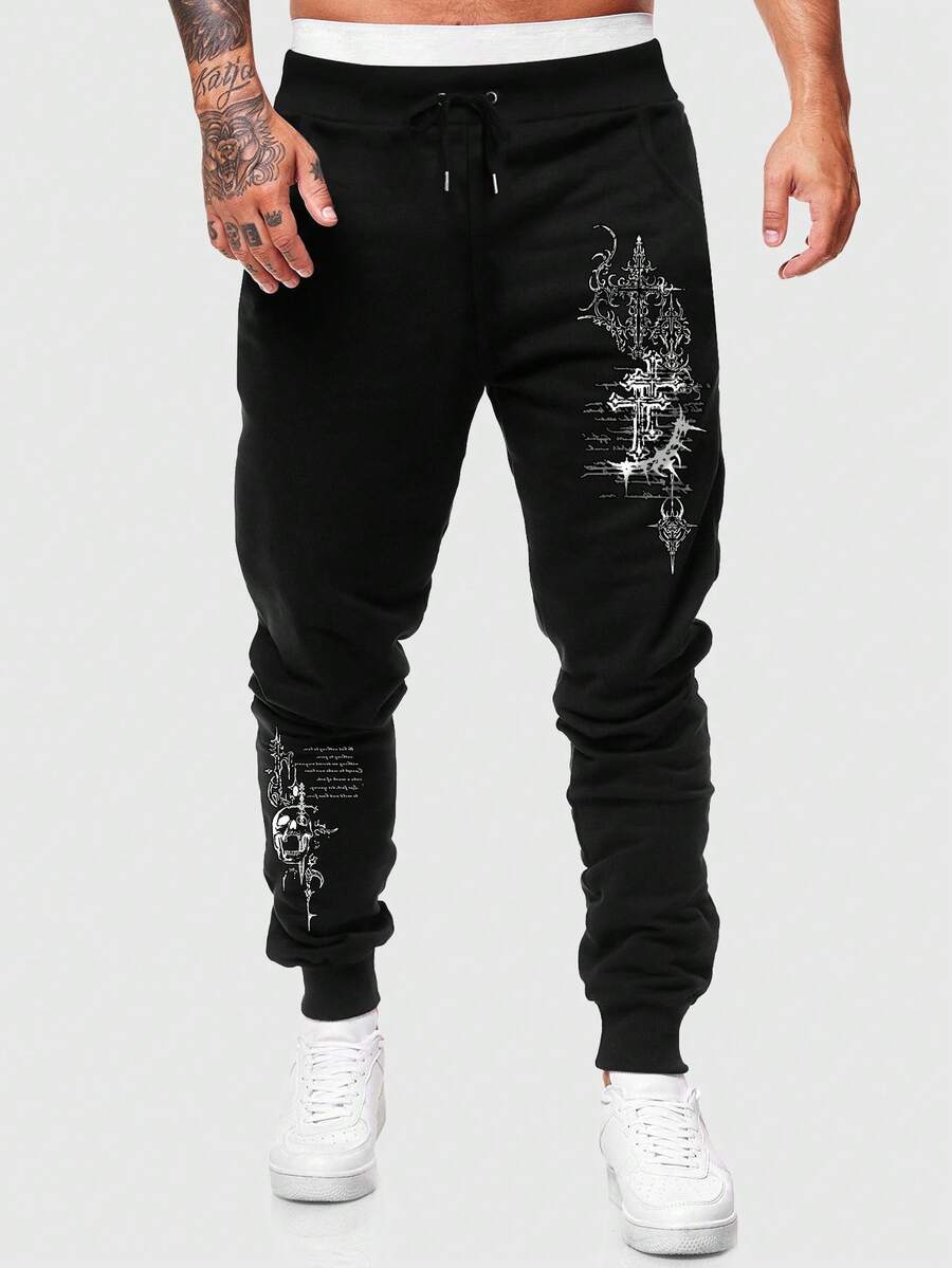 Street Life Pantalones de chándal casuales con cordón y ajuste holgado con estampado cruzado para hombre