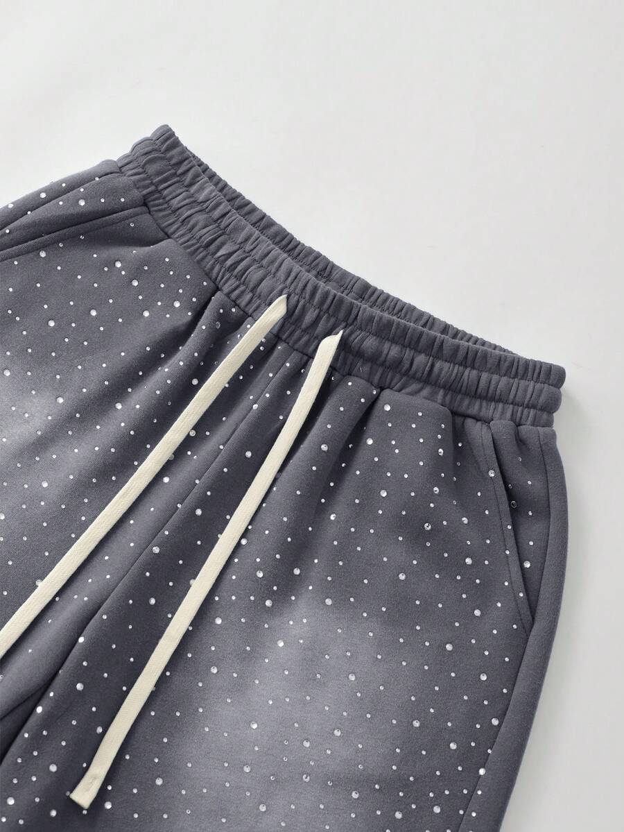 Street Life Pantalones cortos con cordón en la cintura, bolsillos y estampado de rhinestones para hombres