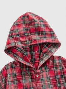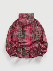 Street Life Sudadera con capucha casual de manga larga con botones y estampado a cuadros para hombres, versátil