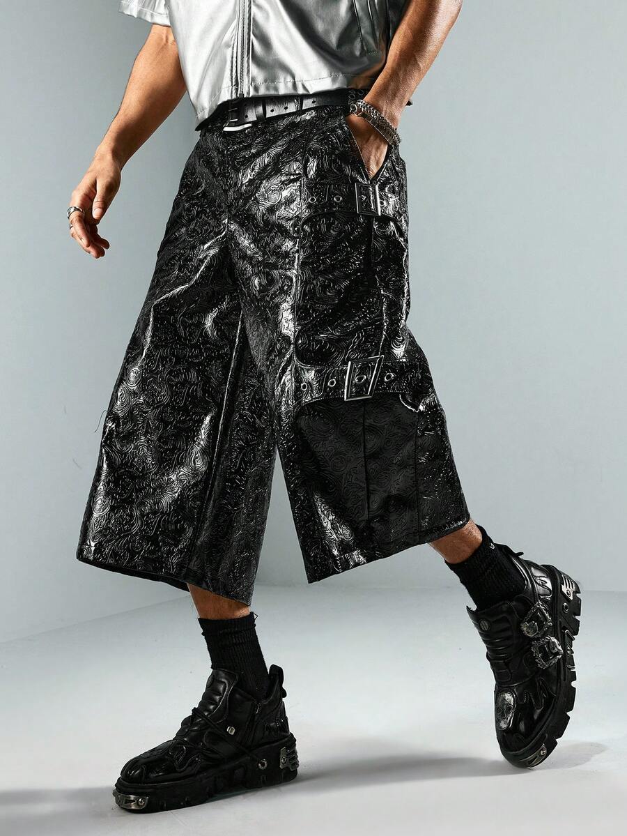 Street Life Pantalones de cuero sintético con textura de 7/8 de longitud para hombre