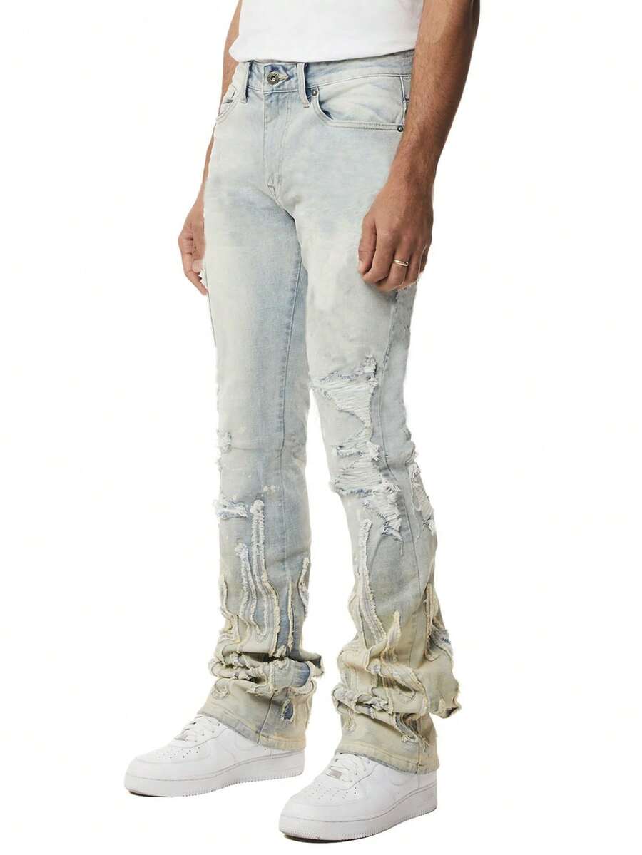 Street Life Jeans apilados con diseño desgastado y rotos de moda para hombre