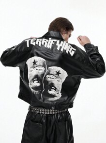 Street Life Chaqueta de PU con estampado de figura y letra de moda para hombres, otoño e invierno