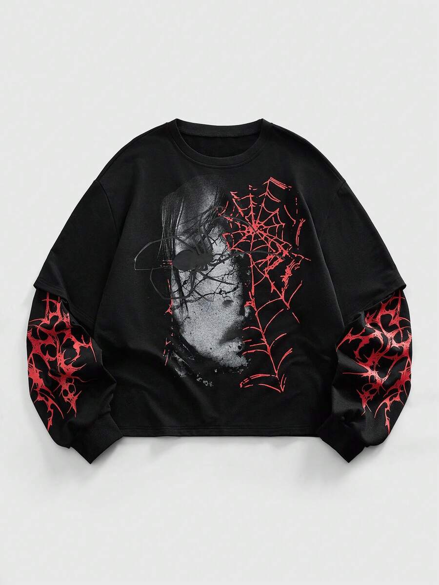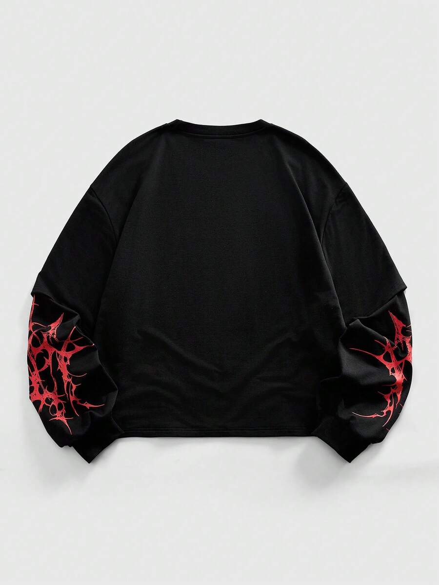 Street Life Camiseta de manga larga con estampado oscuro 2 en 1 para hombre