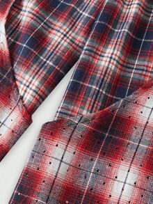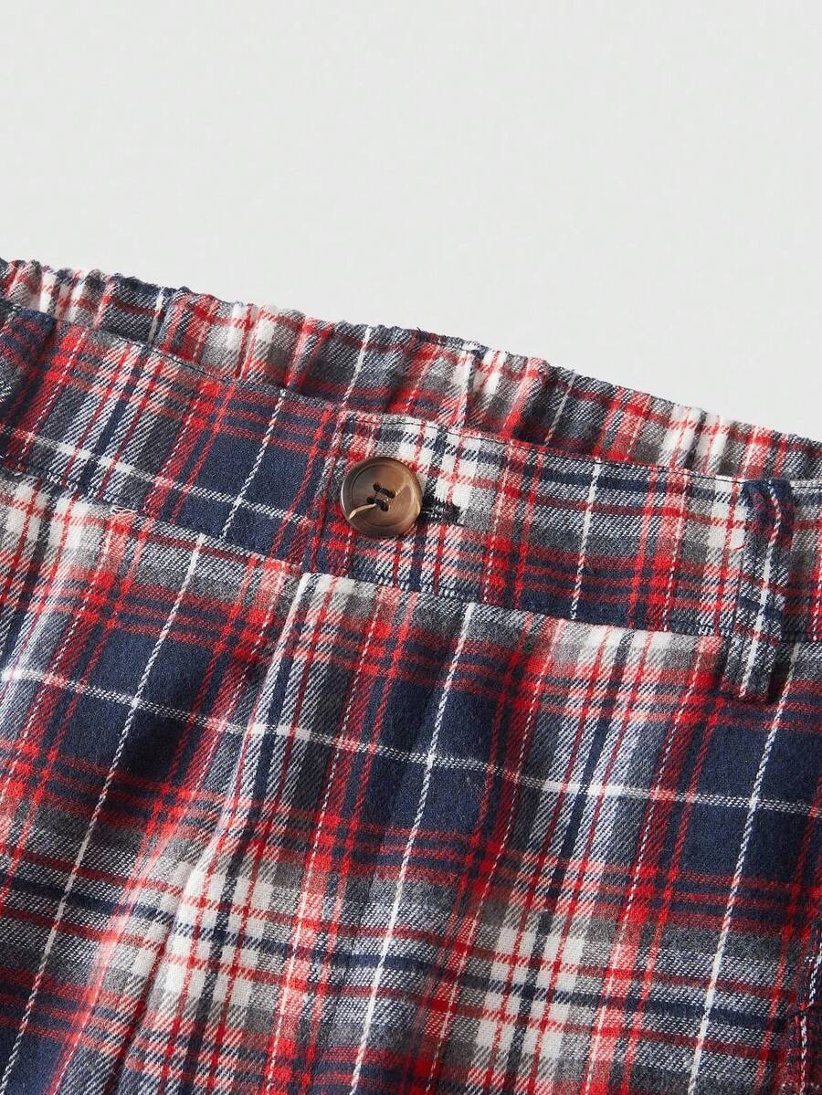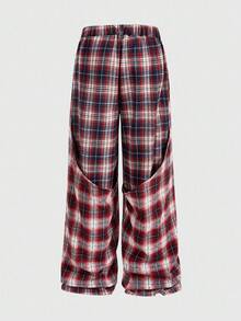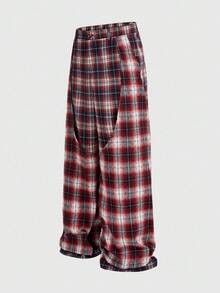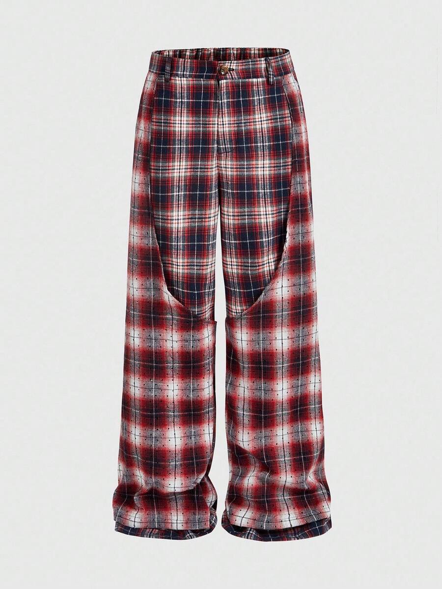 Prep Pantalones de hombre con estampado de cuadros y parches, de doble capa falsa, para otoño