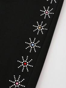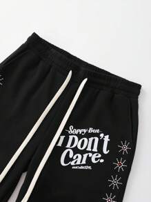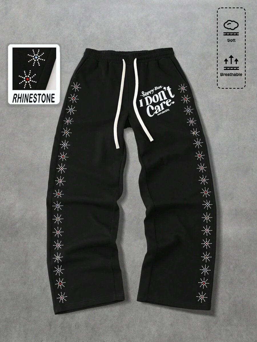 Street Life Pantalón de chándal con estampado de eslogan y rhinestones para hombre