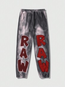 Street Life Pantalones de chándal con estampado de letras efecto tie-dye y cordón en la cintura para hombre