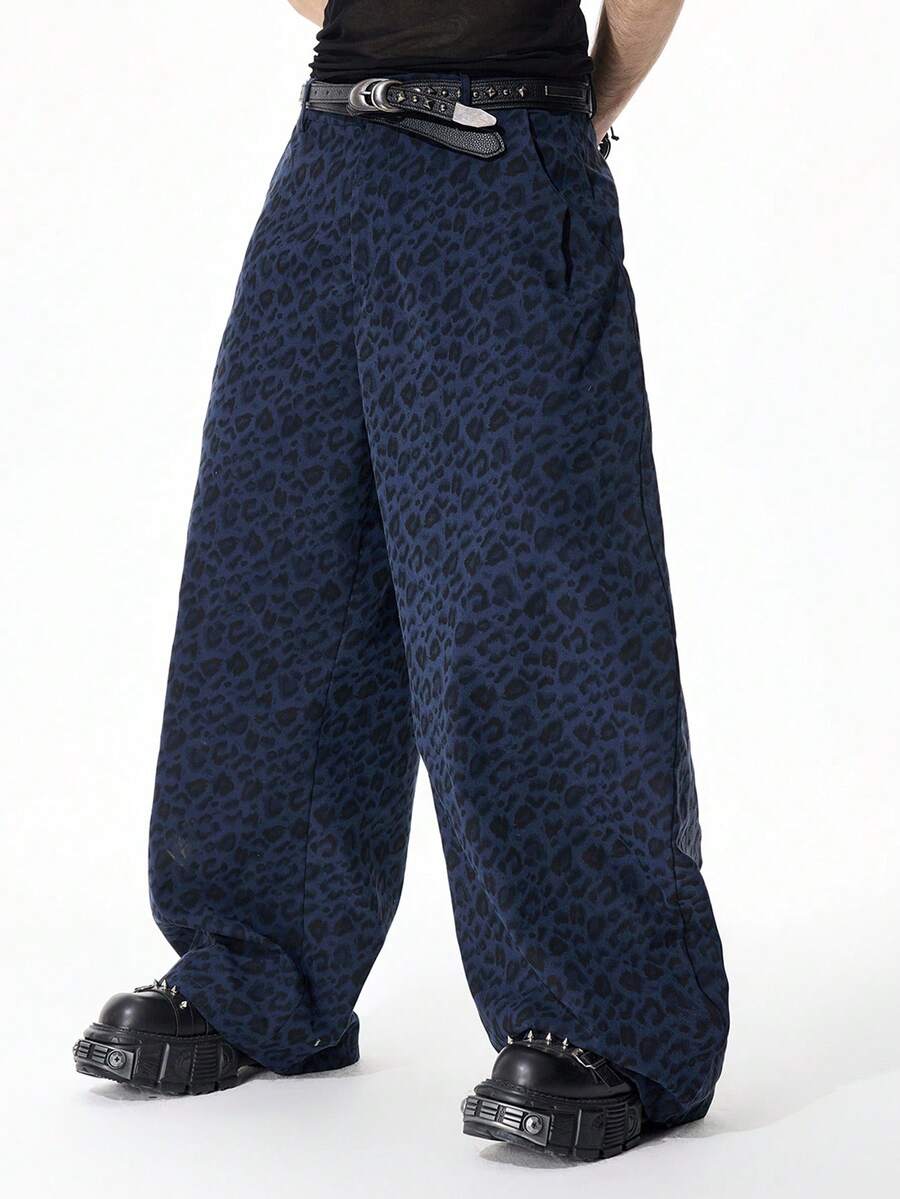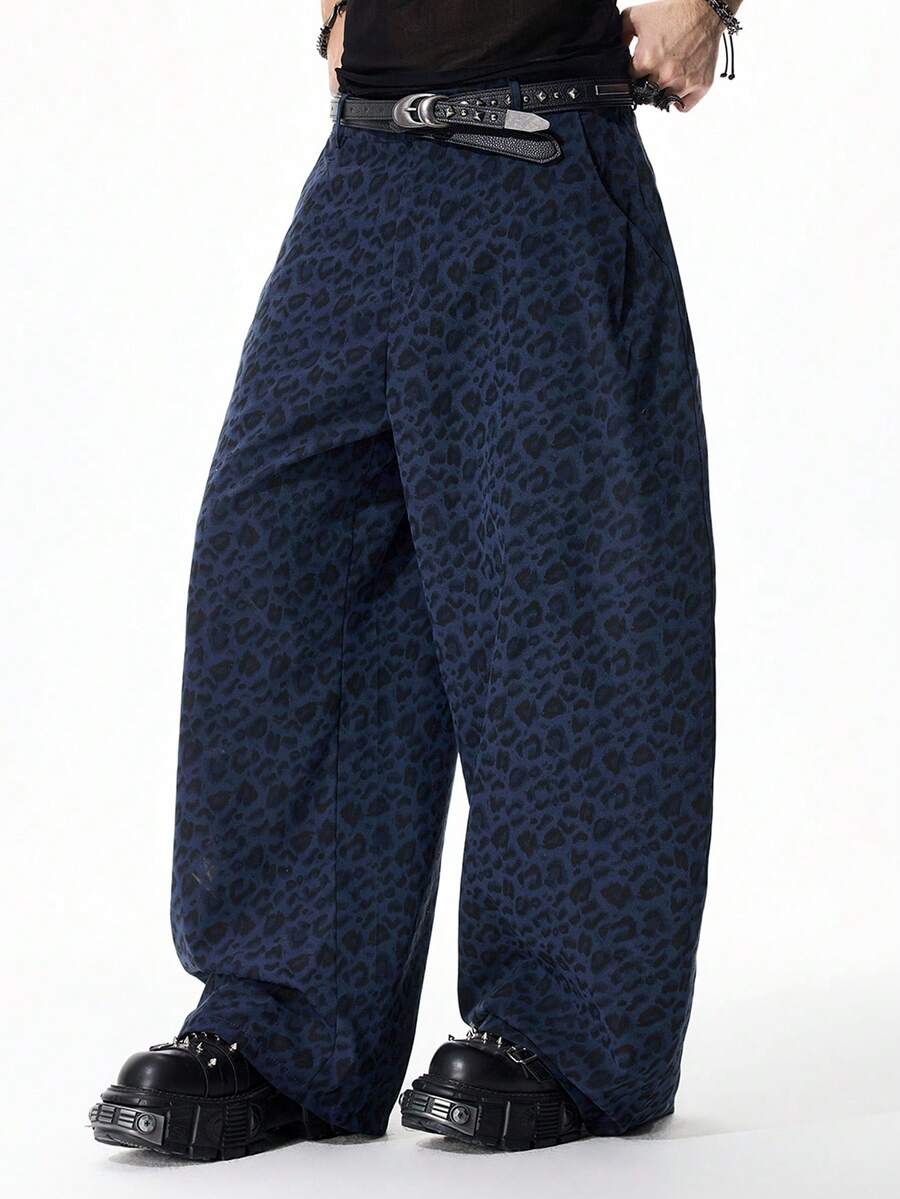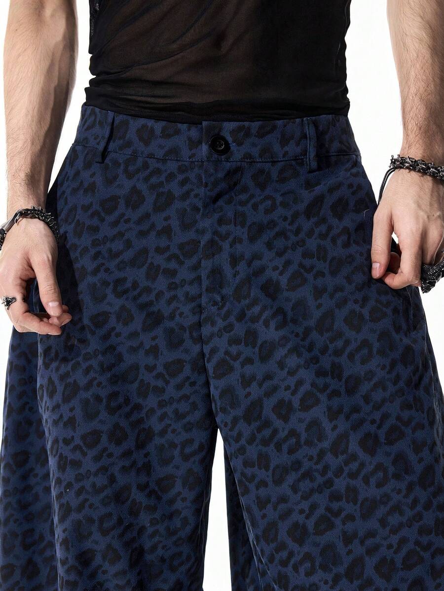 Street Life Pantalones de pierna curva con estampado de leopardo de moda para hombres