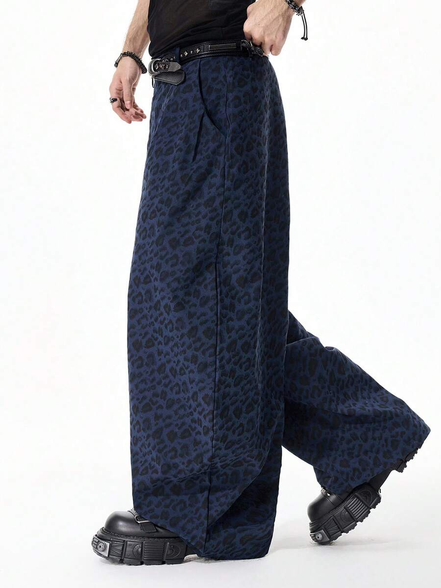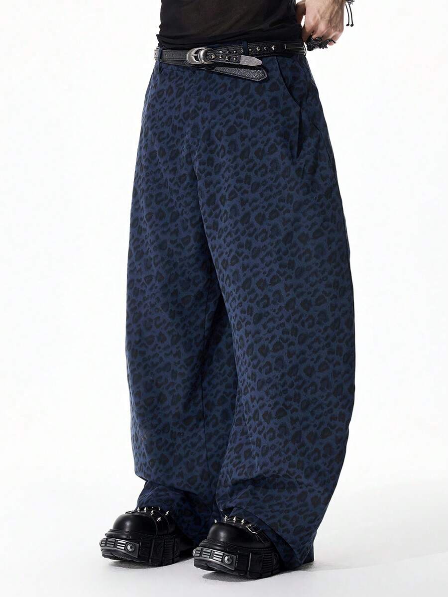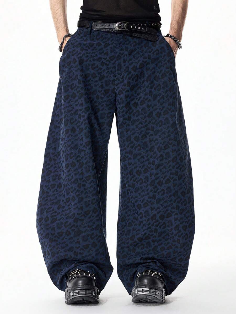 Street Life Pantalones de pierna curva con estampado de leopardo de moda para hombres