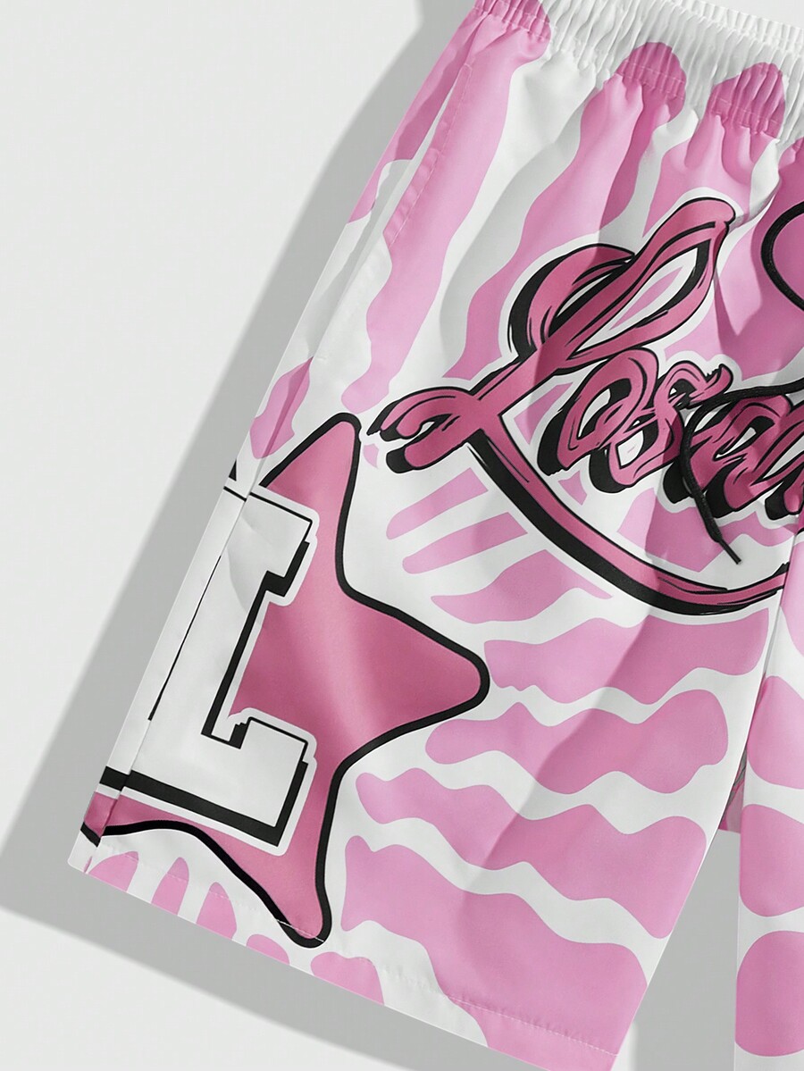 Street Life Shorts casuales para hombre de moda con cintura con cordón y estampado de cinco estrellas y letras