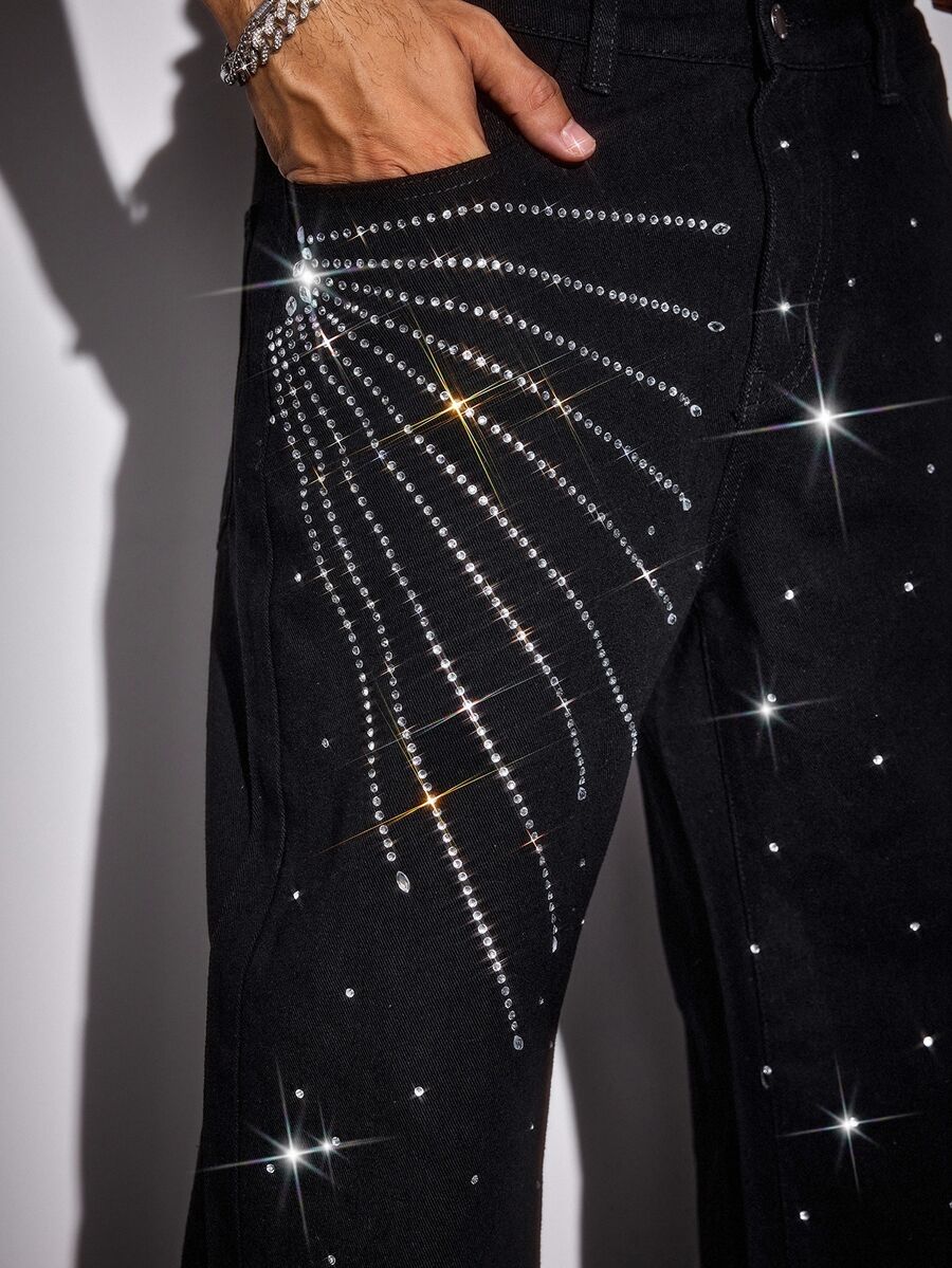 Street Life Jeans acampanados con adornos de strass de moda para hombre, estilo grunge