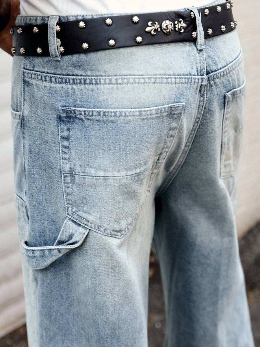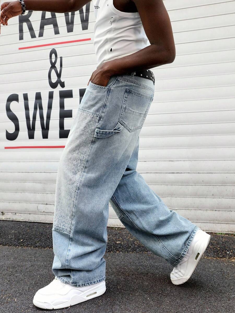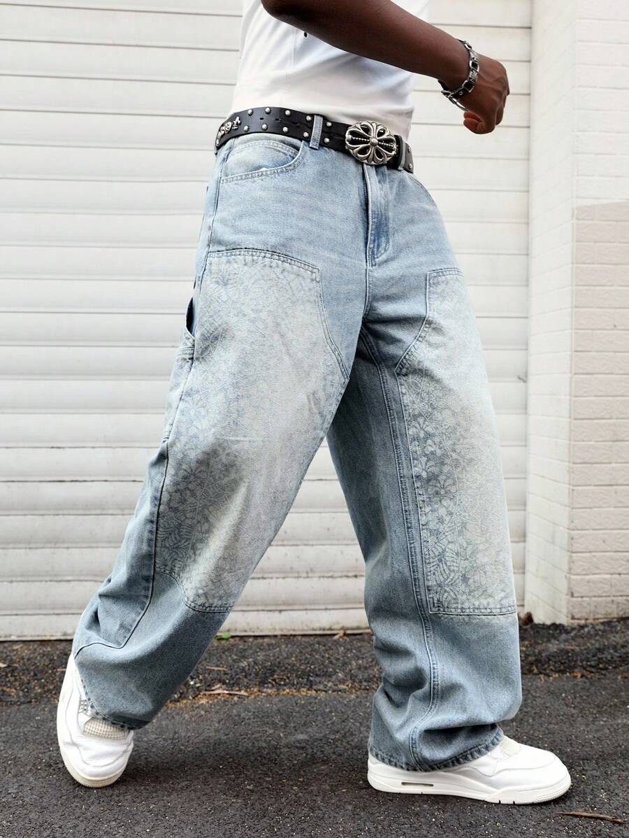 Street Life Jeans holgados de moda casual con bolsillo y estampado floral para hombres