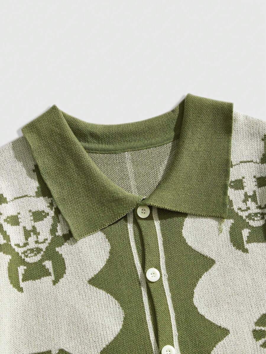 Street Life Suéter gráfico de manga corta con botones al frente, minimalista y casual para hombre