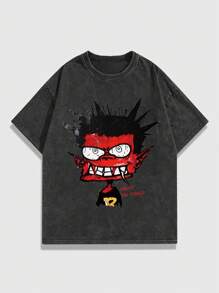 Street Life Camiseta de manga corta estampada con graffitis divertidos, lavada y vintage, para hombres, primavera-verano, escuela
