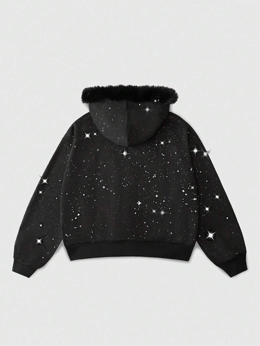 Street Life Sudadera con capucha para hombre con lentejuelas brillantes y luminosas, y adornos esponjosos