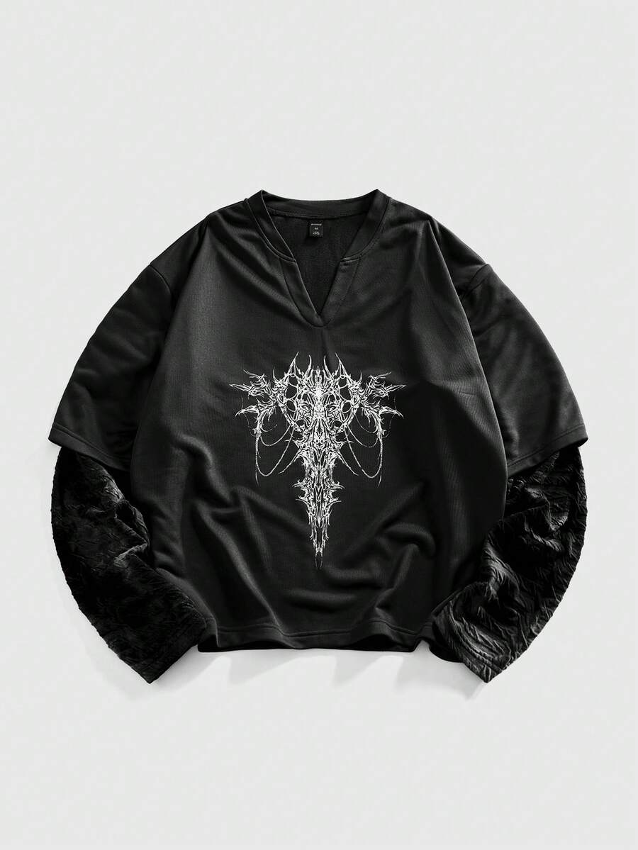 Street Life Camiseta de manga larga casual con estampado para hombre con diseño 2 en 1, otoño