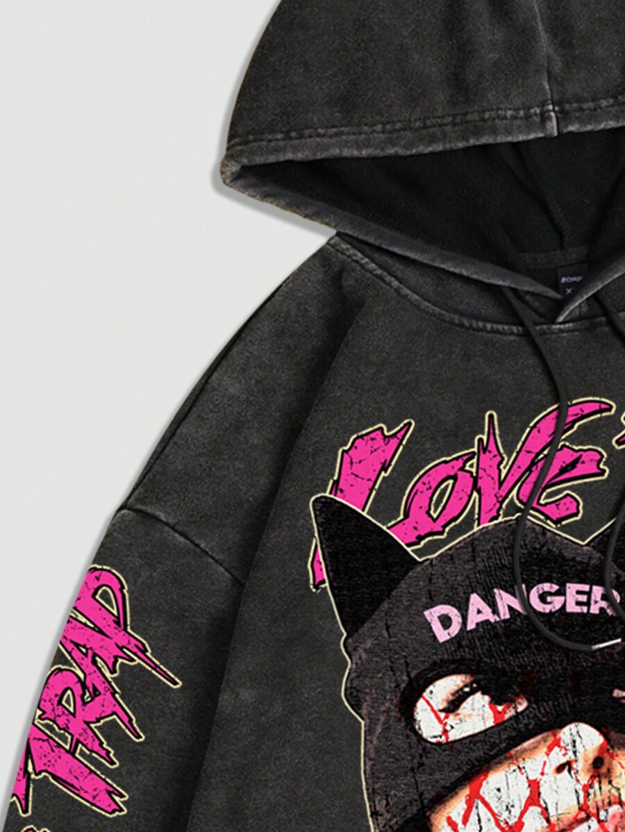 Street Life Sudadera con capucha con estampado gráfico para hombres, con eslogan, apta para primavera y otoño