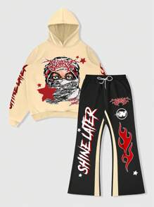 Street Life Conjunto casual de 2 piezas para hombre: sudadera con capucha y pantalones estampados, juego de chándal de manga larga