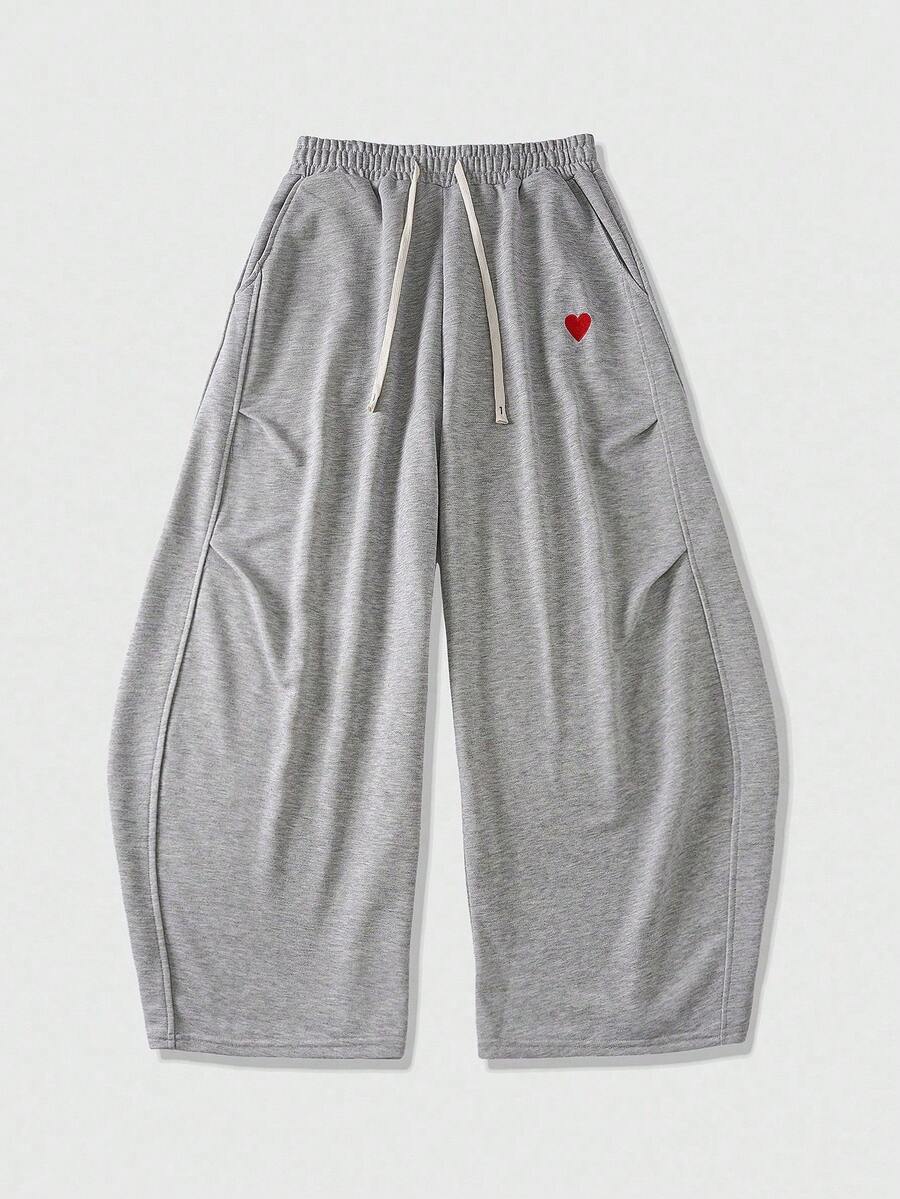 Street Life Pantalones de chándal casuales de pierna ancha con cordón en la cintura y bolsillos con bordado de corazón para hombre
