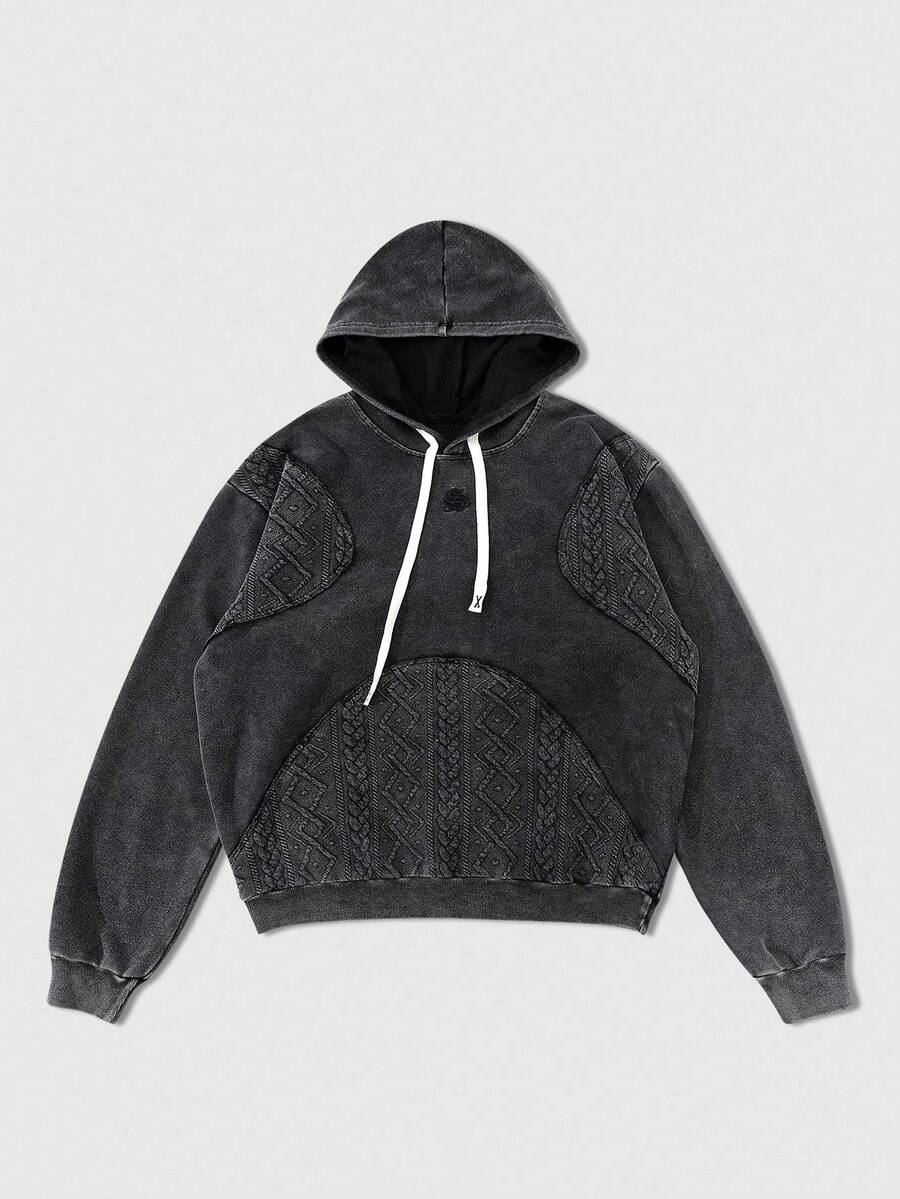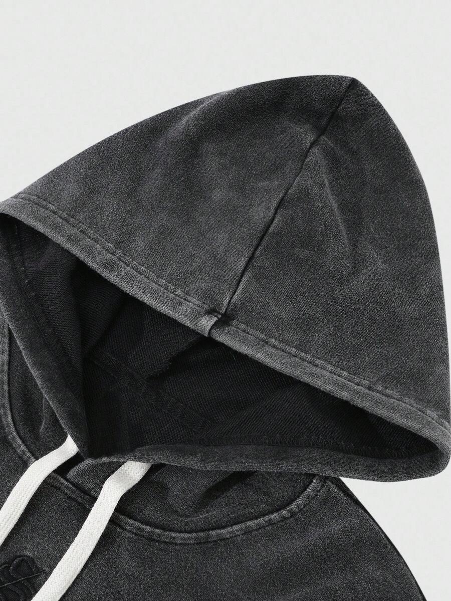 Street Life Sudadera con capucha para hombre, estilo callejero americano con textura de parches, otoño