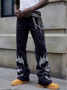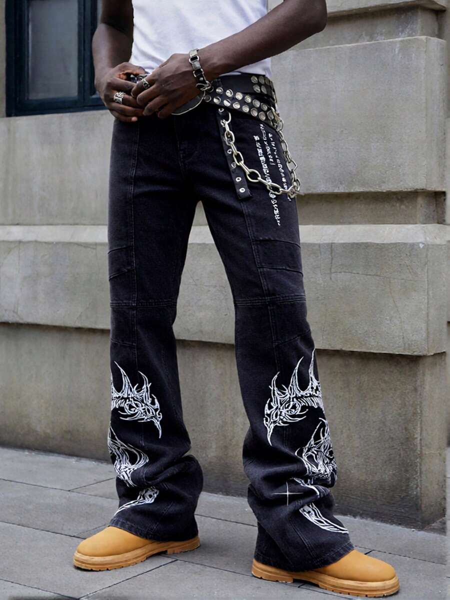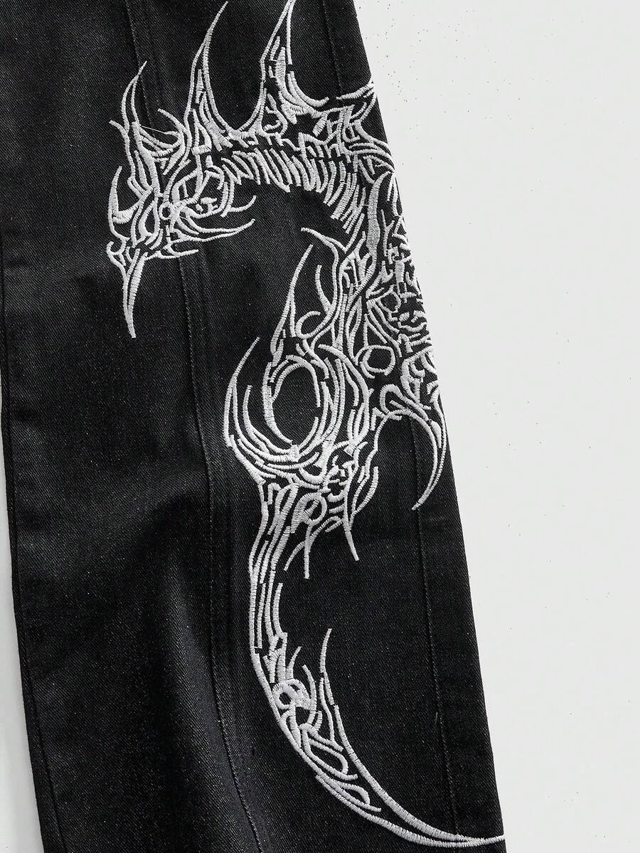 Street Life Jeans con bolsillos con bordado japonés en capas para hombres